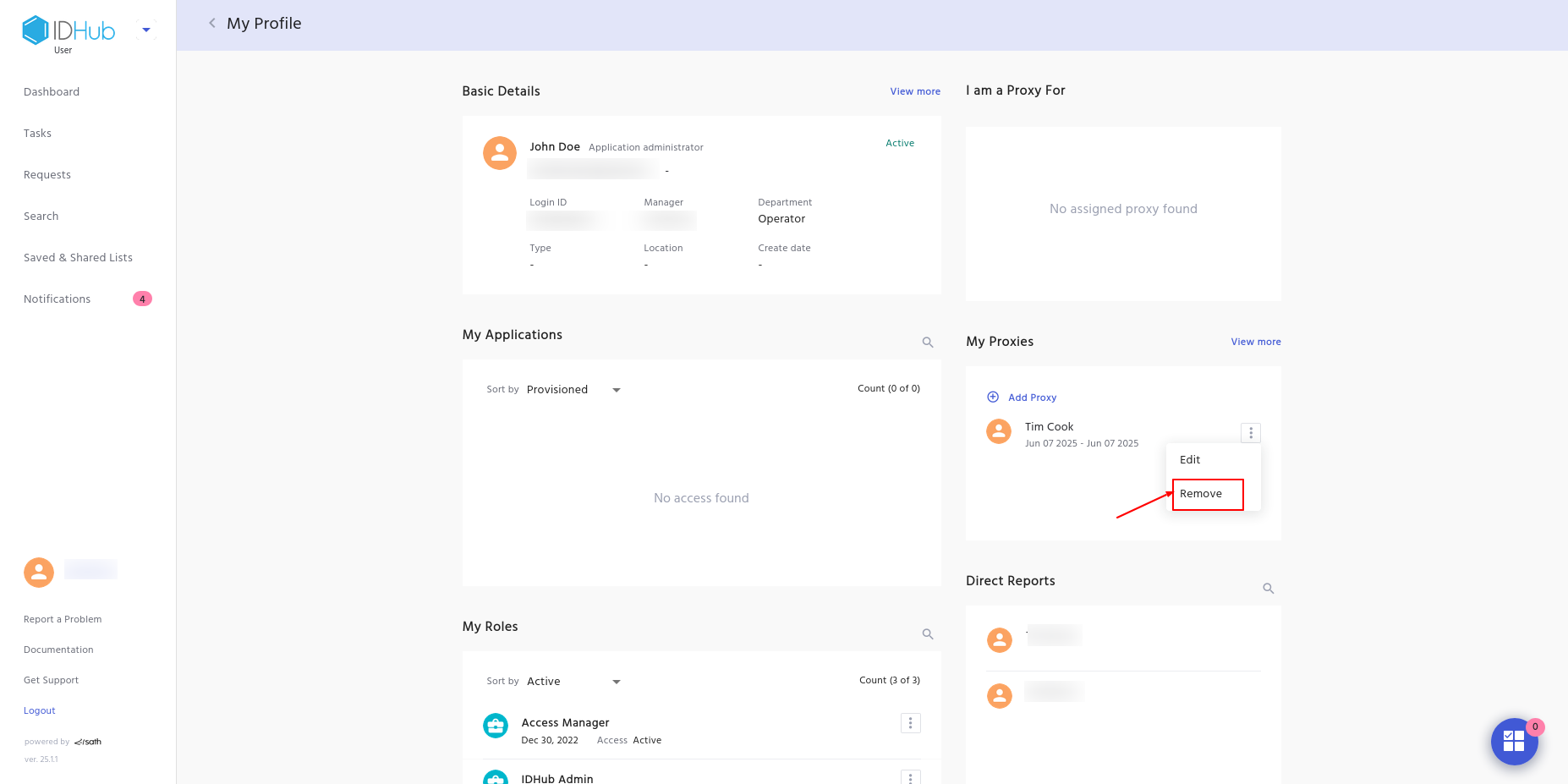 Any active user account in IDHub can be designated as a proxy user. A proxy user would be able to approve, deny and complete access request tasks, fulfillment tasks, certification tasks, on-boarding and service request tasks.