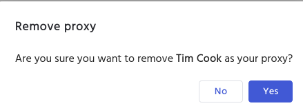 - Confirm removal of the proxy through a pop-up confirmation dialogue.